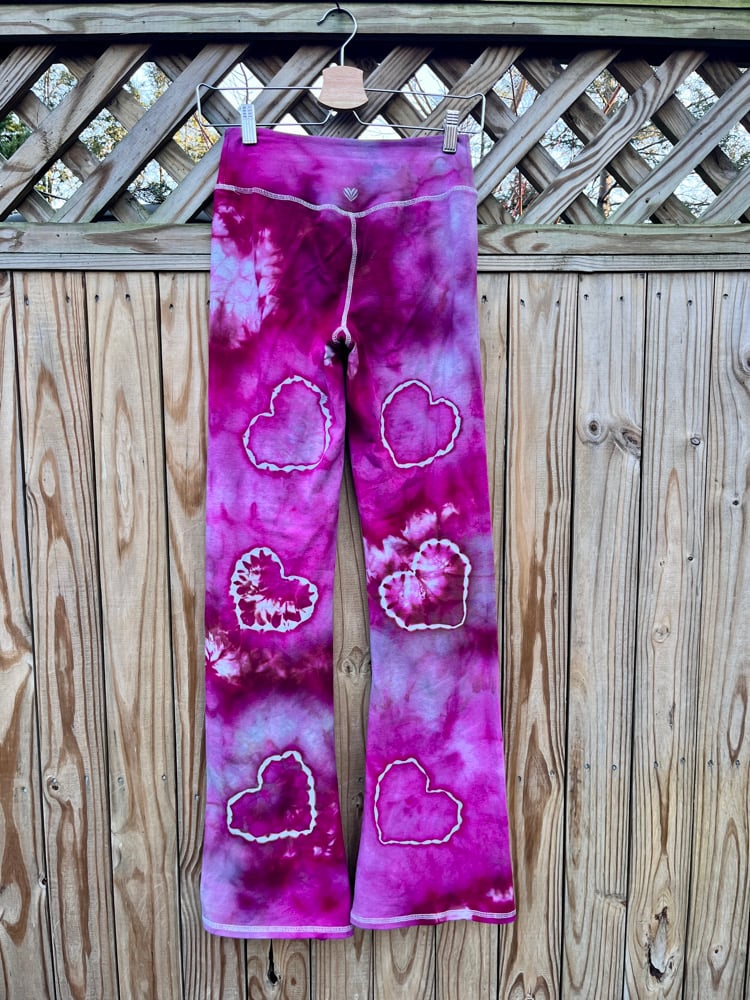 Super flattering mid rise cotton/spandex cross over waistband leggings with a fun flare! Fit is true to size 29 inch inseam.