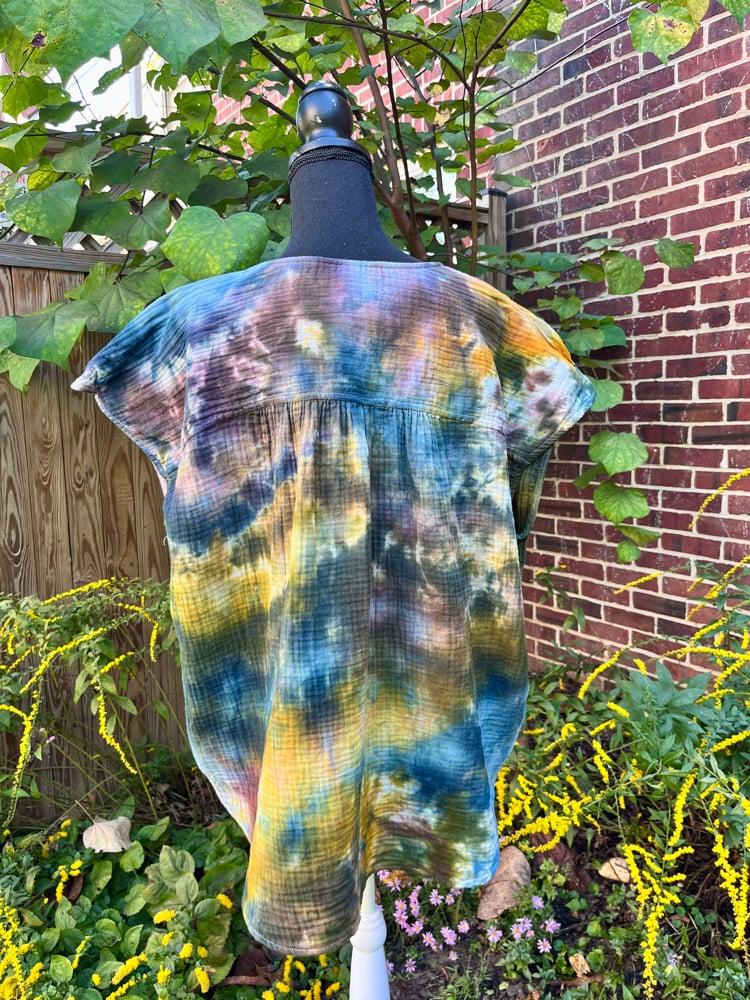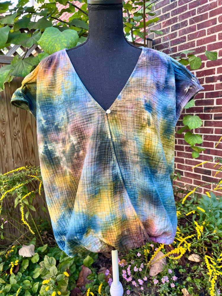 These ultra comfy cotton gauze suplice wrap tops have fun cap sleeves, a button on the front for a bit of coverage and a fun hi/lo fit with an elasticized front. Fit is a bit oversized, you could size down and still get a great fit.
