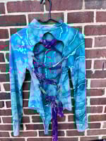 Custom dyed so it’s one of a kind! Famous Maker new with tags (free people) bodysuit with cute on trend mock neck cut and silk saari self tie back detail. Super soft cotton jersey, fit is flexible. Size up or down and adjust fit with straps in back.