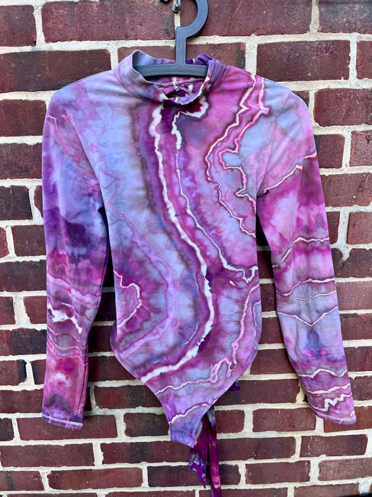 Custom dyed so it’s one of a kind! Famous Maker new with tags (free people) bodysuit with cute on trend mock neck cut and silk saari self tie back detail. Super soft cotton jersey, fit is flexible. Size up or down and adjust fit with straps in back.